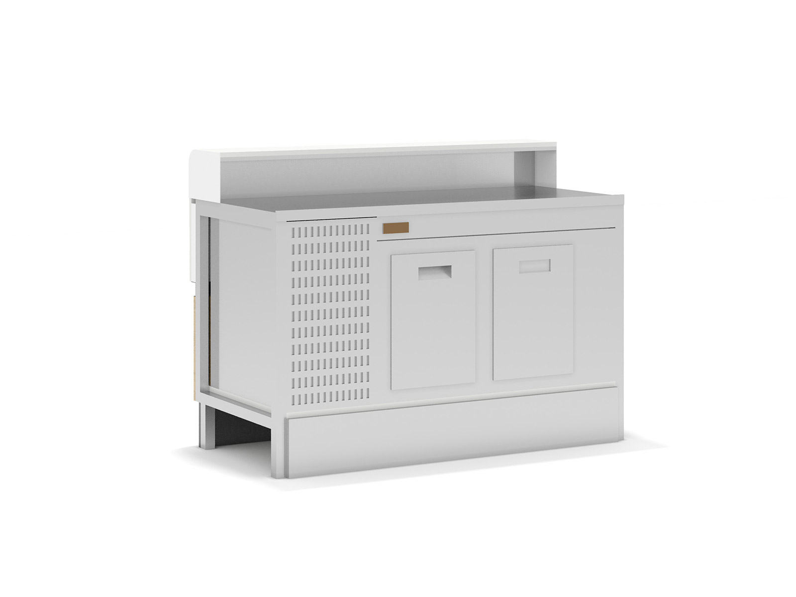 Refrigerated service counter. Wood melamine front panel, available in a large range of wood stains. CS005008+CS005009+CS005010+CS005011 create composition CS005012.